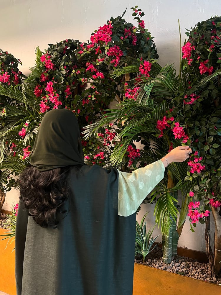 يجب مراعاة العباية في الغسيل لدى المحلات المختصة (غسيل جاف/بخار) يجب عدم تعريض القماش للحرارة -